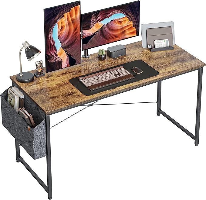 The Cubiker Computer Desk 63 inch offers several benefits, making it an excellent choice for home office or study use. Its modern and simple design enhances any workspace aesthetic while providing ample surface area for laptops, books, and other supplies. The integrated storage bag helps keep essentials organized and within reach, reducing clutter. Its sturdy construction ensures durability, and the desk's versatility makes it suitable for various tasks, from writing to gaming. Furthermore, the brown finish adds warmth and sophistication to the environment. Overall, it's an efficient blend of style and functionality.